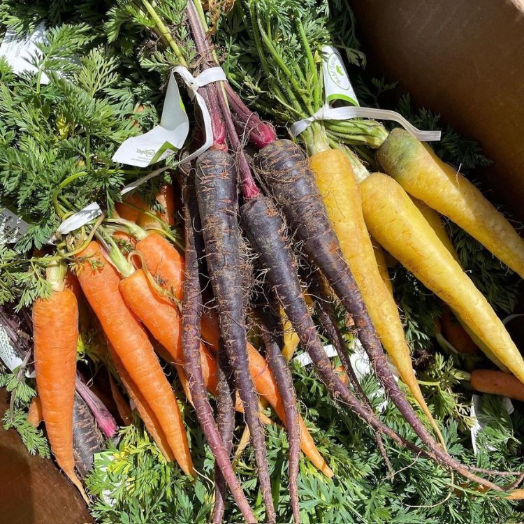 Baby mixed carrots come in a variety of colors, including orange, purple, yellow, and white. They are smooth with a crisp texture and a mild, sweet flavor, often enjoyed raw or lightly cooked.