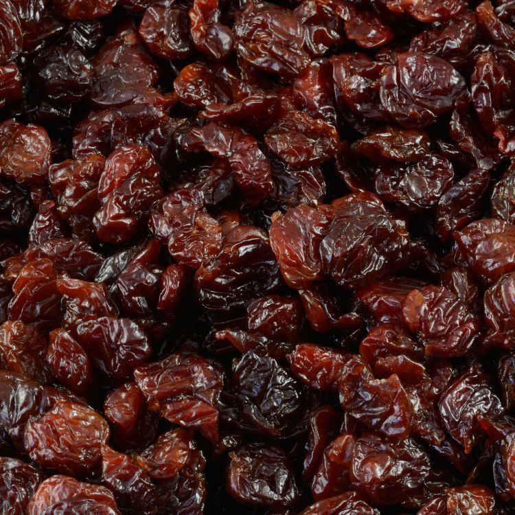 Dried cherries are sweet and tart, with a chewy texture that concentrates their natural flavor. They have a deep, intense cherry taste, with a hint of acidity that balances the sweetness. Depending on the drying method, they can range from slightly tangy to more sugary, and their deep red to dark brown color often hints at their rich flavor. Dried cherries are commonly used in baked goods, salads, cereals, and trail mixes, or enjoyed as a standalone snack.