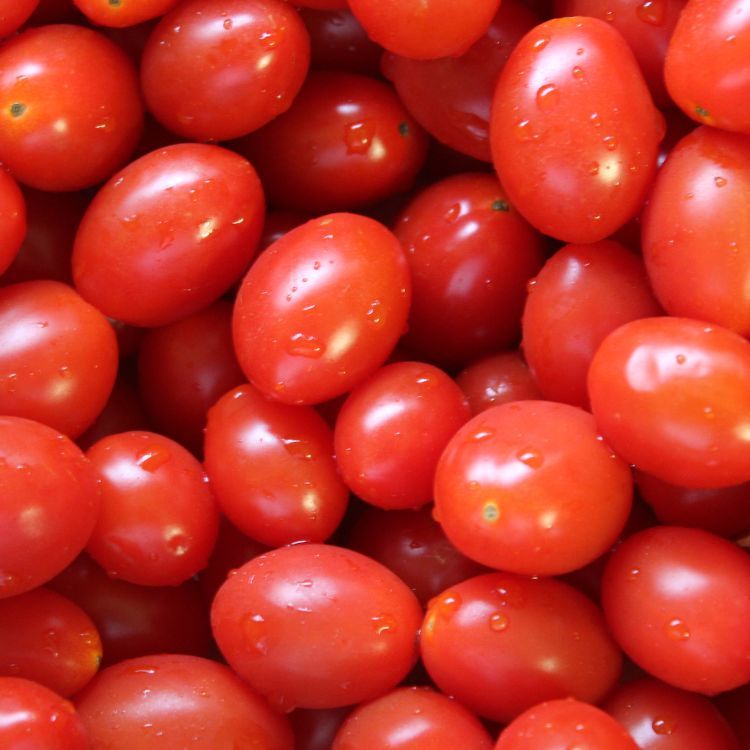 Red grape cherry tomatoes are small, elongated, and vibrant red, with a slightly firm yet juicy texture. They offer a delightful balance of sweetness and acidity, which makes them versatile in both raw and cooked dishes. Their flavor is a bit more intense than standard cherry tomatoes, providing a concentrated burst of sweetness and tanginess with each bite. These tomatoes are excellent in salads, pasta, and salsas, or can be roasted to bring out their natural sugars.