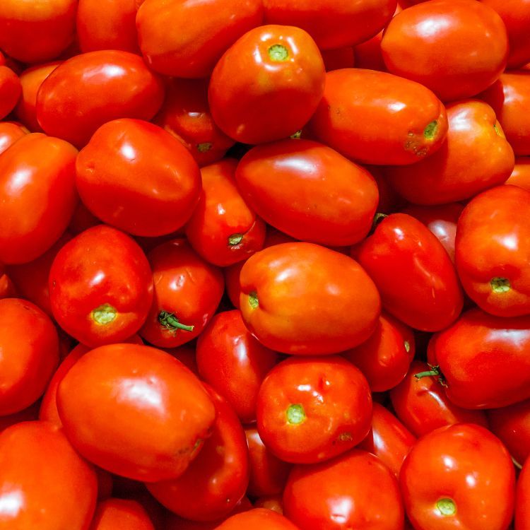 Roma tomatoes, also known as plum tomatoes, are a popular variety in culinary uses due to their firm flesh, low moisture content, and relatively low seed count. They have an elongated, oval shape and vibrant red color when ripe. Known for their mildly sweet and tangy flavor, Roma tomatoes are ideal for sauces, salsas, and canning, as their thick walls hold up well to cooking and offer a concentrated tomato flavor. Their dense texture also makes them suitable for roasting and drying, as they retain their shape and enhance in sweetness when heat is applied.