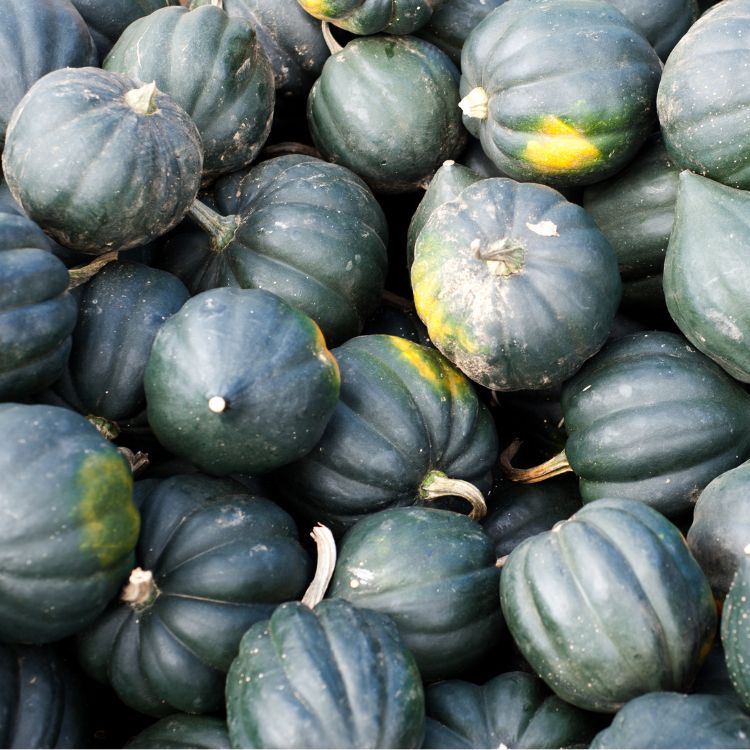 Acorn squash is a small, round winter squash with a textured, dark green skin and sweet, tender orange flesh. When cooked, its flavor is mild and nutty, with a slight sweetness. The flesh has a creamy, smooth texture when roasted or baked, often described as rich and earthy. It pairs well with savory and sweet seasonings, such as cinnamon, maple syrup, garlic, and herbs, making it versatile for a variety of dishes, from soups to side dishes. Its shape also makes it ideal for stuffing with grains, meats, or vegetables.